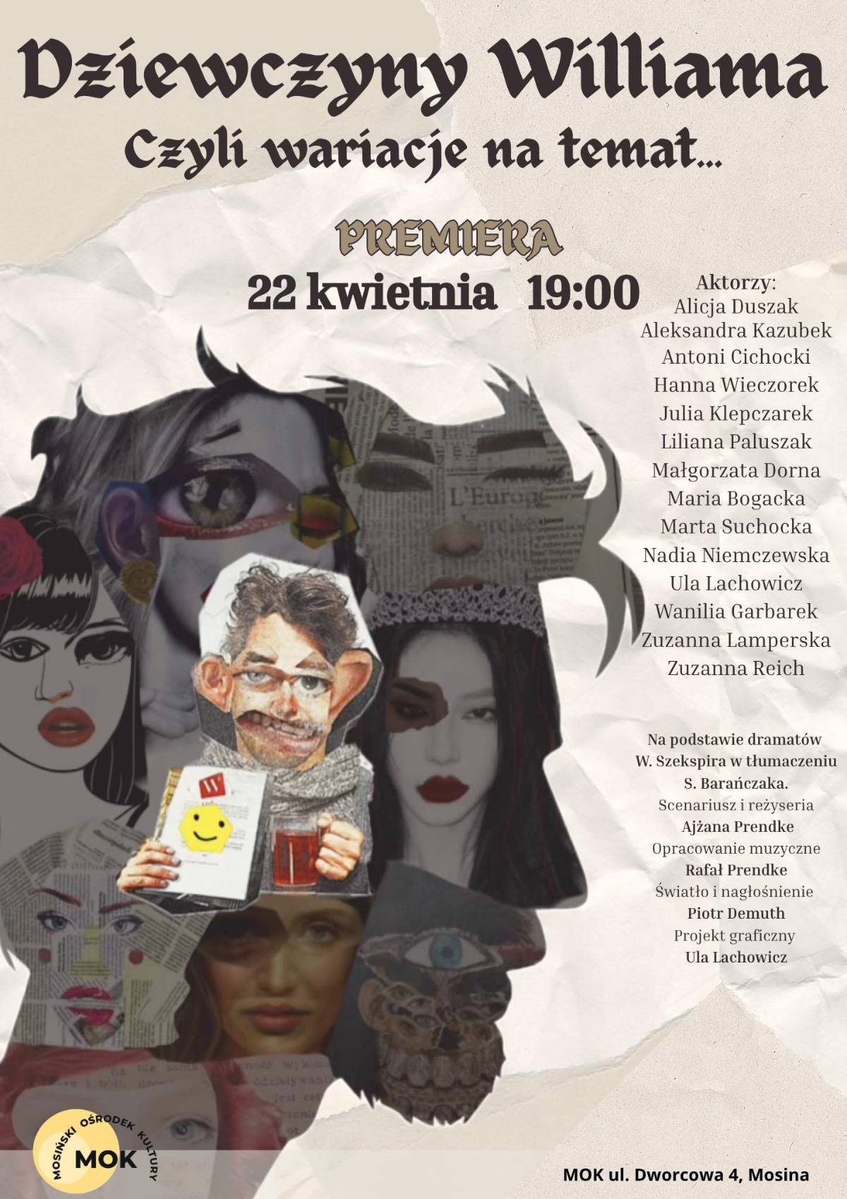 22 kwietnia o godz. 19:00 młodzieżowa grupa teatralna Między Wierszami zaprasza na premierę spektaklu: „Dziewczyny Williama czyli wariacje na temat…”. Co się stanie, gdy młoda energia spotka klasykę, a znane historie zostaną opowiedziane… trochę po swojemu? Będzie błyskotliwie, momentami bezczelnie, czasem wzruszająco — ale na pewno nie nudno. William może i napisał oryginały, ale te dziewczyny mają własny głos — i zamierzają go dobrze wykorzystać Bilety w cenie 10 zł (MKM) i 15 zł dostępne od 08.04 od godz. 10:00 w Mosińskim Ośrodku Kultury. Zarezerwujcie wieczór, zabierzcie znajomych i sprawdźcie, co kryje się między wierszami…